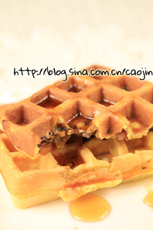相比下,酵母版的华夫有点酥酥的味道,口味在面包和饼干之间游荡..