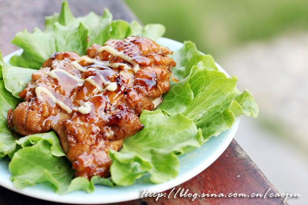 鸡腿腌料:青芥末酱1/2小勺,米酒:2大勺,泰式甜辣酱:1大勺。盐:一小撮