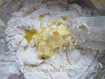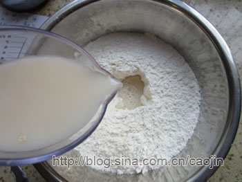 先将酵母容易温水(夏天可用常温水)融化,因为饼干面团,揉的时间短