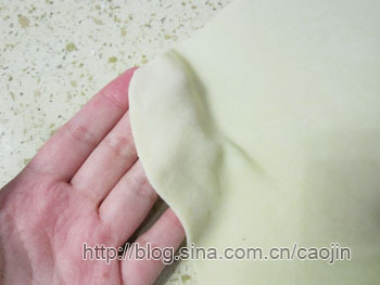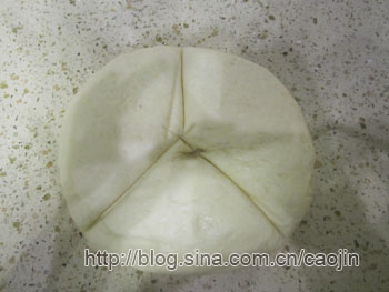 因为台面没那么大,擀不开。咱给他分三份~~~嗯哪,就是梅赛德斯,benz~~的标志