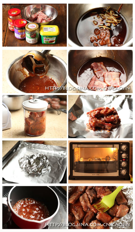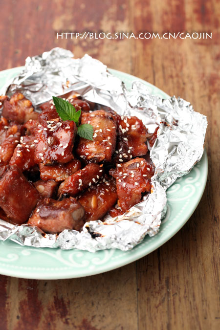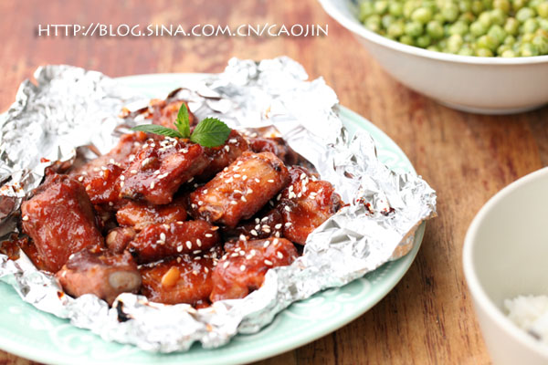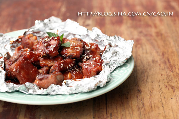 那时候老公说,排骨本来就没多少油和汁,想烤到熟,肯定脱水啦。于是研究想出焖烤的办法,用锡纸包裹住排骨,酱紫前期排骨内的肉汁不会被烤干,还会慢慢深入排骨。后期刷上酱汁,再烤,让排骨略带的油花烤出,同时外层汤汁凝结,包裹住内部的肉汁。排骨颜色也鲜亮可人。至从用这种方法烤,排骨再也不会干巴巴而且肉嫩好吃!