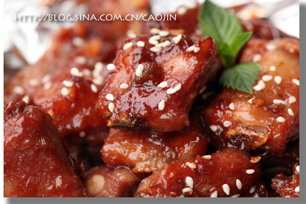 这道排骨算是本周意外之作,因为哩,兔纸本来有其他安排。但是鉴于昨晚熊猫同学在帮兔纸安装跑步机的时候“英勇”挂彩。手指擦破一大块皮,血流不止。然后兔纸于心不忍的问他,要不要明天吃点啥补一补?于是熊猫同学光荣滴,举着受伤的,被包的馒头一样的手指说:“偶要吃叉烧”,偶耸耸肩膀,家里暂时木有做叉烧的梅花肉哩。要不给你做叉烧味儿的排骨吧…….熊猫同学表示灰常赞同:“老婆我以为你会说,给你买包叉烧味儿的方便面吃算了捏,话说我有那么刻薄咩…….”转眼熊猫同学又笑嘻嘻的说:“老婆,其实为了你流点血不算啥……偶这点血跟你每个月为我牺牲掉的,差远了”…….我差点喷了一口橙子汁!