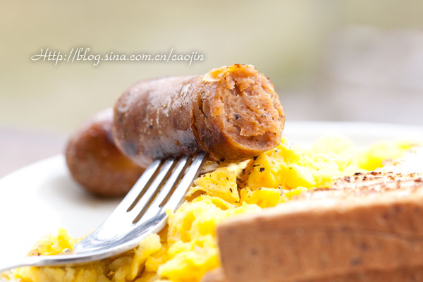 因为香肠是生的,所以可以冷冻保存。需要的时候煎着吃~