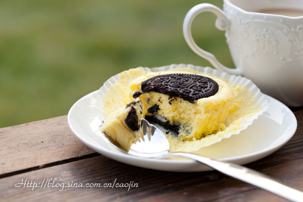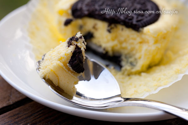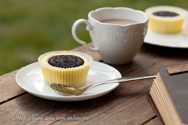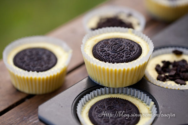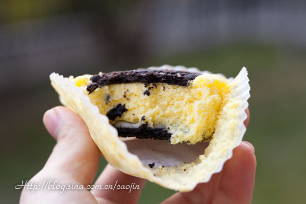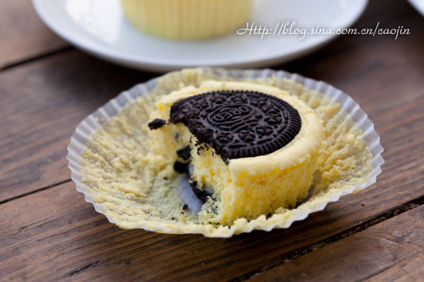 这个迷你乳酪蛋糕,上下各一片奥利奥饼干~
