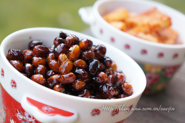 材料:泡好的黄豆约150g,美味鲜酱油:30g,老抽:10g,细砂糖:10g,芝麻油:约6-8g