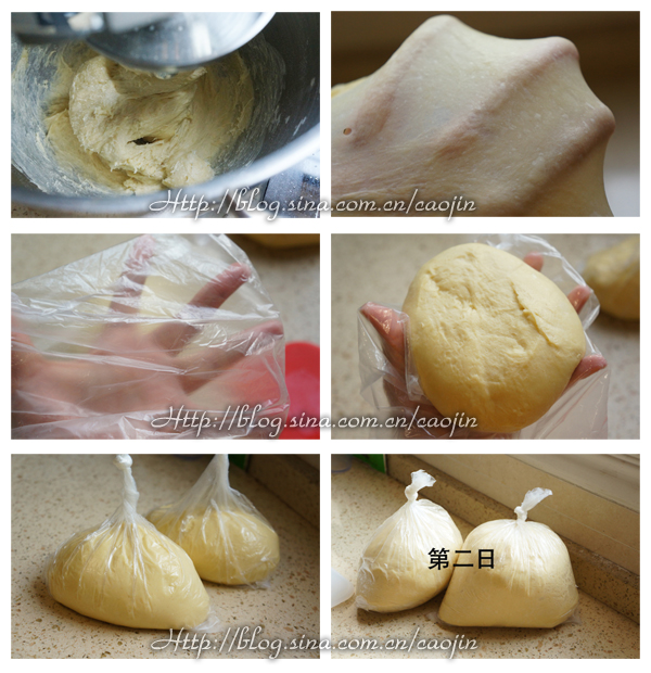 只是如果发酵时间短(如12小时),打好的面团可以适当在室温下发酵30分钟,再冷藏。