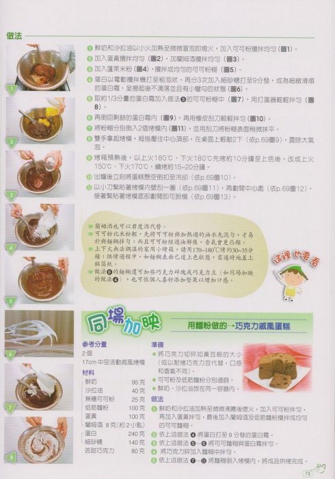 而且所有配方也都有完整过程图,之后还配上小贴士。哈哈,适合偶这种看图学话的懒人。孟老师操刀的书,很有她的风格。书挺厚实,配方也很多,很多都有同场加映…