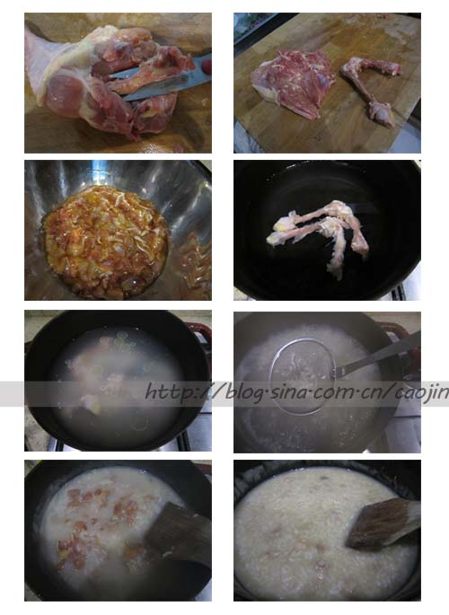 鸡大腿2根(偏多),用剪刀去骨..剔除整个鸡肉,再去掉比较多的肥油。留点点粥比较香。