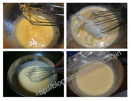 4,隔水加热至浓稠状(或者可以微波炉加热至更浓稠,因为我要留作蛋糕,所以做的比较稀)