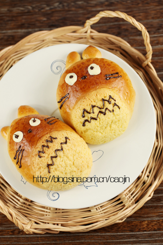 这个面包其实是个变形的菠萝包啦。其实我觉得很多是用欧克来做..但是我更爱菠萝包的口味。熊猫也爱,所以做了菠萝包的版本。还算不错吃。