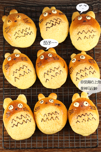 全部盖好之后,就可以推进去慢慢发酵了。大概30分钟。之后刷蛋液。(蛋液要是有泡泡,不过滤会跟我的龙猫一样有麻子,道理都懂,可是我就是懒。每次烤出来都是麻子)