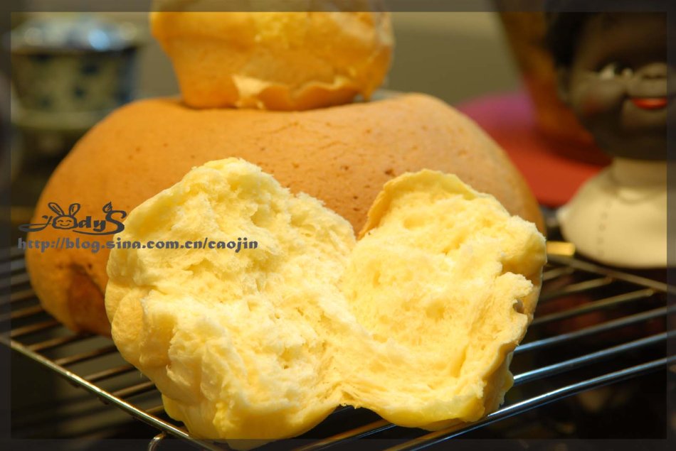 组织像海绵蛋糕一般,这个面包蛋黄含量高,如果蛋不新鲜可能会有蛋腥味道。