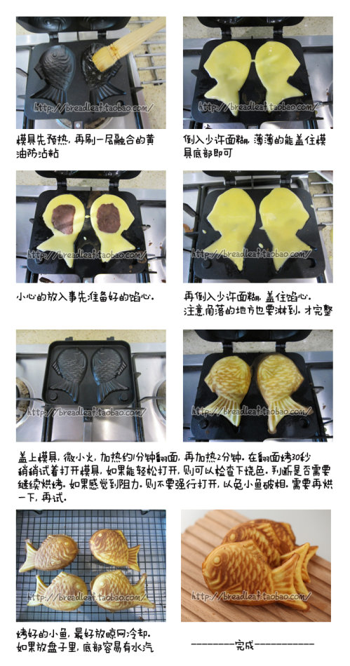 鲷鱼烧的面糊,是蛋糊和糖及蜂蜜,所以可能会有点粘。为了方便脱模,每次烤最好都刷一下黄油。