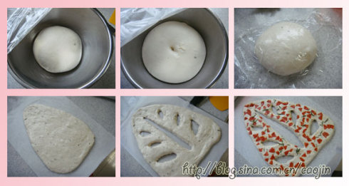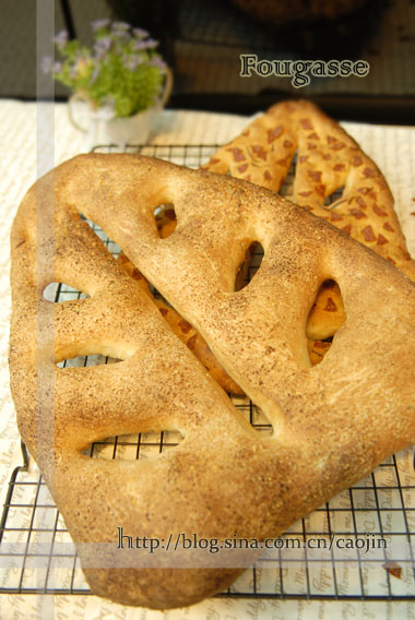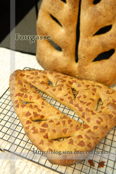 这个充满香草和浪漫气息的面包,诱惑了偶许久。据说是focaccia的法国表兄,在法国南部的普罗旺斯非常之流行,原文的取壁炉的意思,传统的fougass要做成树叶或者嫩芽的形状,代表着盎然生机,也有说上面割7个孔,代表人面孔上的七窍。不管它有如何的典故…为了这个漂亮的造型…值得折腾一把~