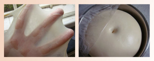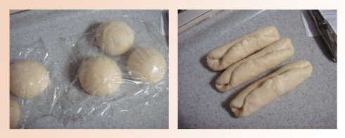取出,手压排气,分割150g每份,滚圆,盖保鲜膜松弛15-20分钟,光滑面朝下擀开,翻面卷起一次,继续松弛15分钟(这个膜其实不行…因为我是做带盖的…所以就草草了事了…如果做3峰,偶会再纠结一下~)