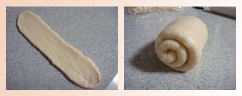2次擀卷后,卷起入模,注意擀卷要排除空气及多余气泡..入模后稍稍调整卷卷之间的距离均匀。