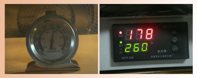 另外后续报道下偶的烤箱,经过精度调整,如图,温控显示 178度,实际测量为182度。目前空烧与中部温差在5度以内…偶还是灰常满意地,下次更新,偶还有新好玩的武器秀…哈哈,下次再爆咯~
