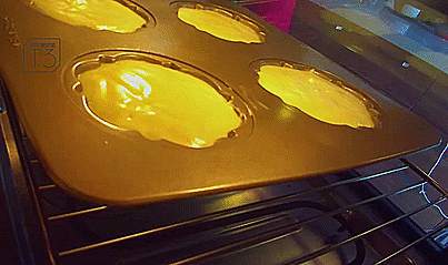 如何判断烤熟呢!看图,蛋糕开始膨胀,到最大,然后回落,水蒸气蒸发,到基本稳定,就是熟了~~