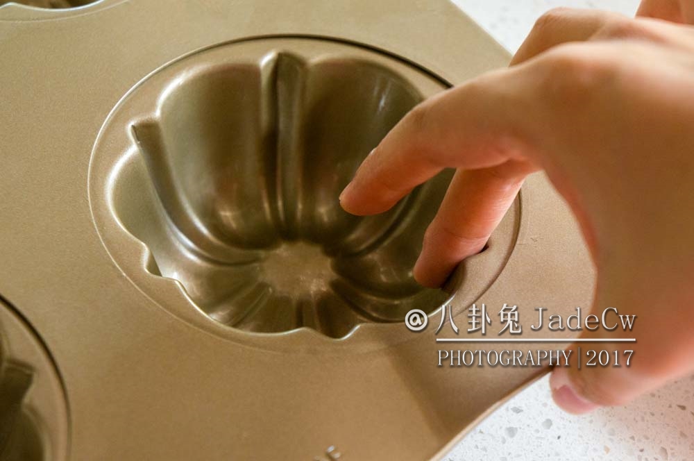 1,首先,为了达到比较美貌的脱模效果,我们在模具表面涂抹薄薄一层软化黄油!不撒粉不撒粉!