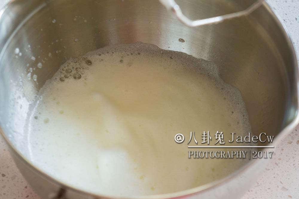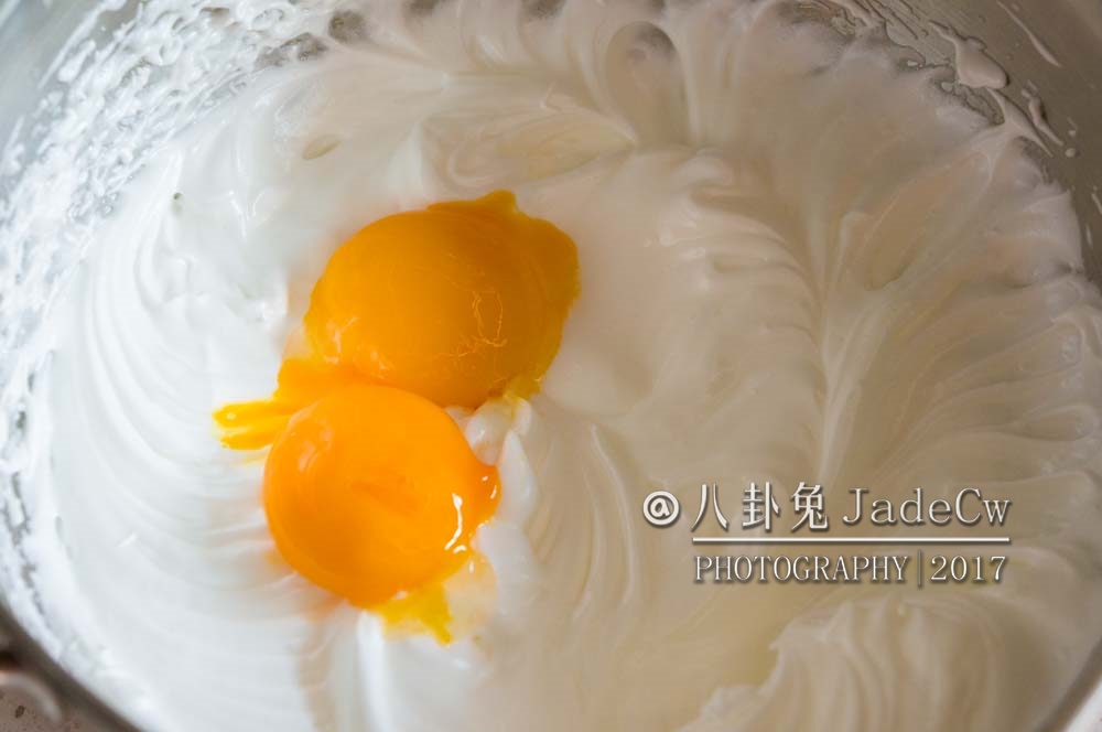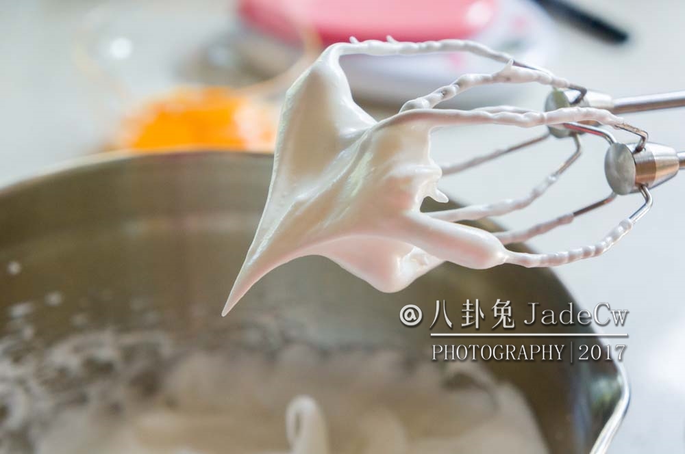 - 蛋白蛋黄分开!蛋白打至硬性发泡!
