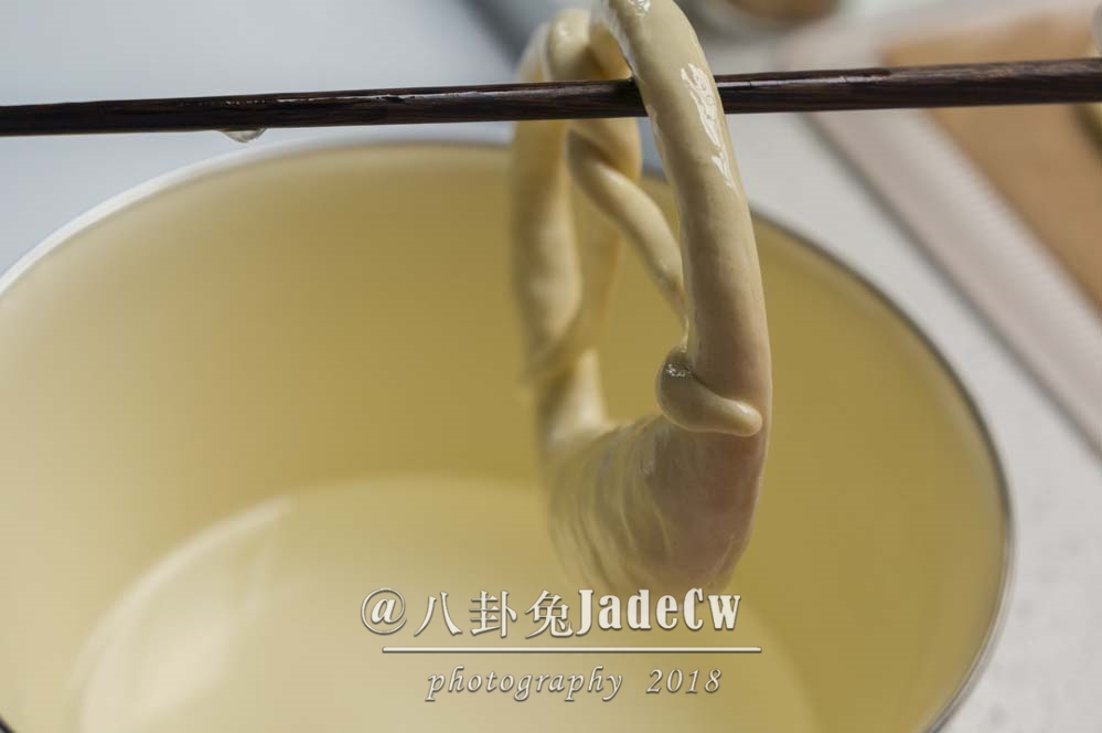 总结: 1,制作碱水请一定注意安全注意安全注意安全! 橡胶手套,pvc,pe手套都可以带,实在不行2层。 如果碱水沾到皮肤,请一定用大量流动的水冲洗15分钟以上.. 使用完的碱水倒入一些白醋,后可以厕所丢弃,顺便清洁坐便 2,冷冻是为了固定形状,方便浸泡碱水, 这个面包几乎没有二次发酵,也没有滚圆,松弛等步骤,还是省了不少事儿。 3,碱水包整体是偏韧的,水分不如吐司软包类, 如果觉得配方偏硬,也可以根据喜欢适当加水, 如果单纯想软一点,发酵时候也可以适当延长, 凡事以个人喜欢第一。 4,这里用的烘焙碱是NaOH,是火碱烧碱, 不是纯碱Na₂CO₃,也不是小苏打NaHCO₃, 这些做出来都不正宗。但我不拦着你尝试 5,配方里没有糖,嗯真的没有糖,你是不是送了一口气 6,不是所有人都喜欢的口味,谨慎尝试。 7.今天的另一篇文章有福利...... 啊,你才看见,当我没说。