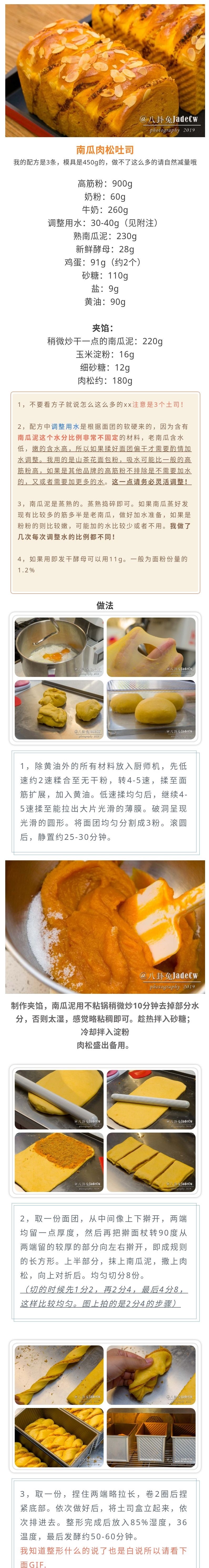 发布于2019年11月21日 由yanle香喷喷的南瓜肉松吐司 很多吐司揉面,薄膜的判定,整形发酵等细节可以看之前的吐司教程:戳这里 问我肉松用哪个的话~~自制哒!戳这里 收藏 (8) +1已打分已有 3 用户参与33 : 0 +1已打分