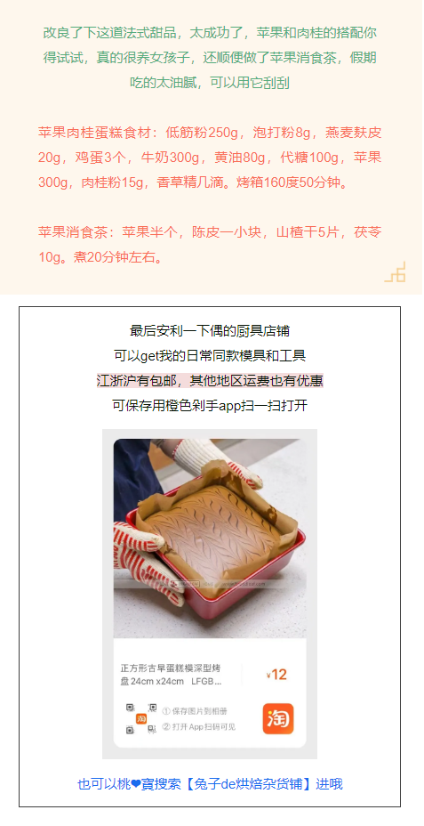 发布于2023年6月16日 由yanle【视频食谱】苹果肉桂的搭配也太绝了! http://www.breadleaf.net/wp-content/uploads/2023/06/0507_2.mp4 收藏 (0) +1已打分已有 0 用户参与00 : 0 +1已打分