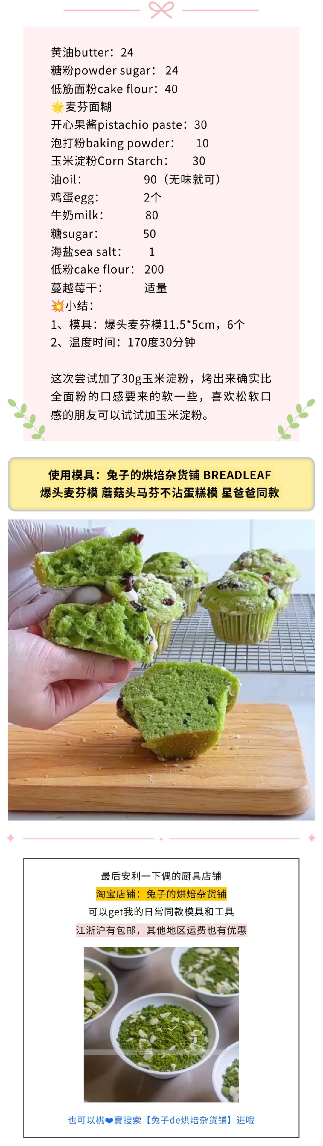 发布于2025年4月11日 由yanle【视频食谱】开心果·麦芬蛋糕|🍃春天的颜色 http://www.breadleaf.net/wp-content/uploads/2025/04/开心果麦芬1.mp4 收藏 (0) +1已打分已有 0 用户参与00 : 0 +1已打分